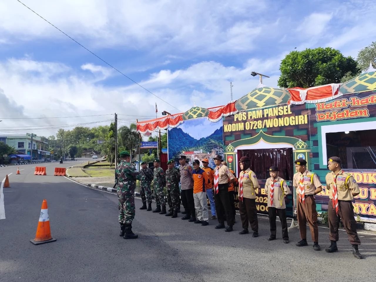 Wonogiri-BreakingNewspost.id – Dalam rangka menyambut libur Lebaran Idul Fitri 1447 Hijriah, Kodim 0728/Wonogiri mendirikan Pos Pengamanan Jalur Selatan (PANSEL) Arus mudik Lebaran yang melintas di jalur penghubung Antar Provinsi DIY, Jateng dan Jatim tepatnya di bundaran Kecamatan Giriwoyo, Kab. Wonogiri. Rabu (18/3/2026).