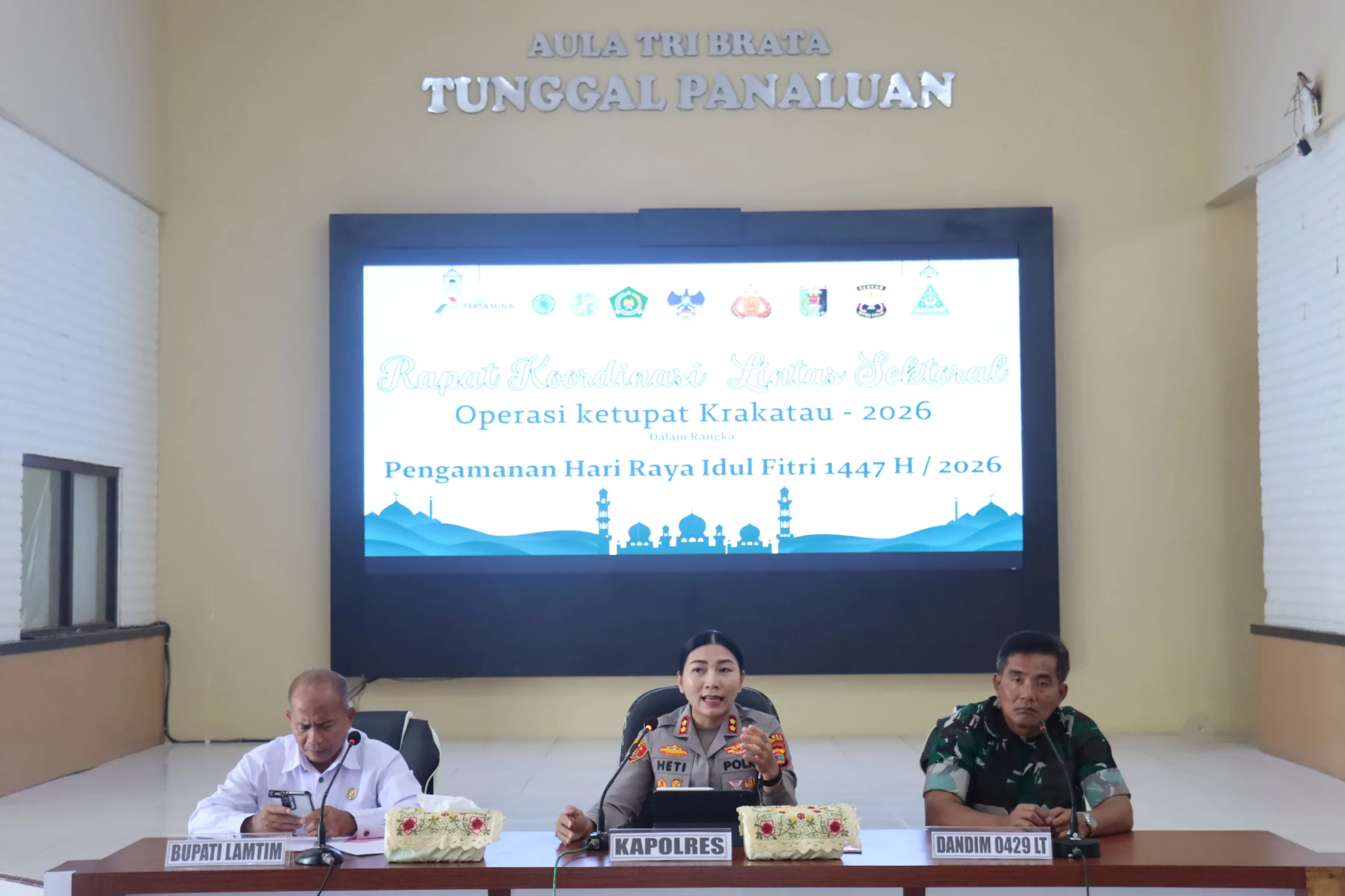 LAMPUNG TIMUR-BreakingNewspost.id – Kapolres Lampung Timur AKBP Heti Patmawati, memimpin langsung kegiatan Rapat Koordinasi (Rakor) Lintas Sektoral dalam rangka kesiapan Operasi Ketupat Krakatau 2026, Rabu (11/3/2026).