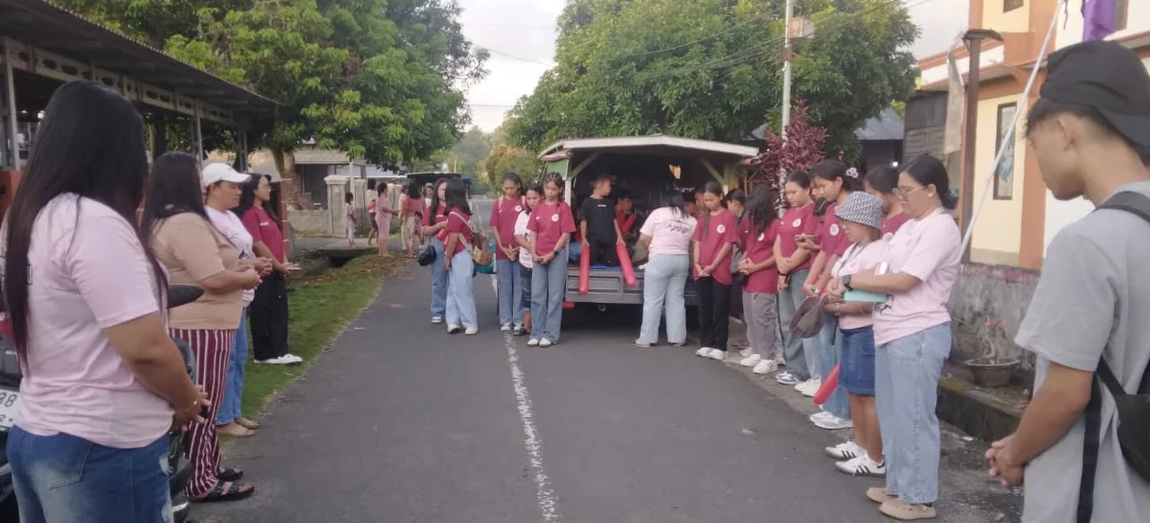 Kegiatan yang dilaksanakan hari ini diawali dengan ibadah singkat di titik kumpul desa Wineru. Dalam momen tersebut, para remaja bersama pembina dan orang tua menaikkan doa sebagai bentuk penyerahan diri kepada Tuhan, memohon perlindungan selama perjalanan serta kelancaran dalam mengikuti seluruh rangkaian kegiatan.