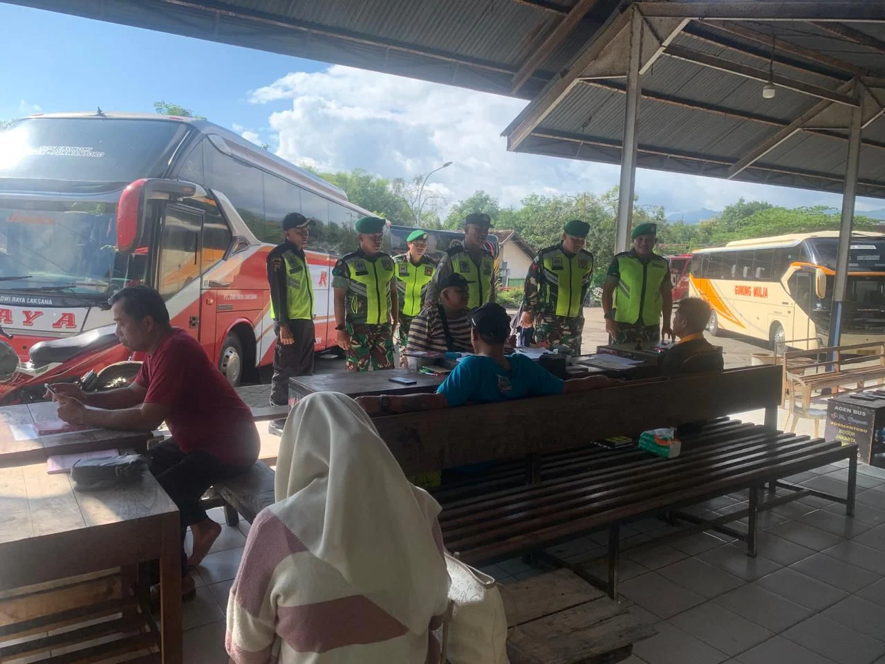 Kegiatan pemantauan ini difokuskan pada titik kedatangan dan keberangkatan penumpang bus, seiring mulai meningkatnya mobilitas masyarakat dari berbagai daerah. Aparat gabungan melakukan pengawasan situasi sekaligus memberikan rasa aman bagi para penumpang yang baru tiba maupun yang hendak melanjutkan perjalanan.