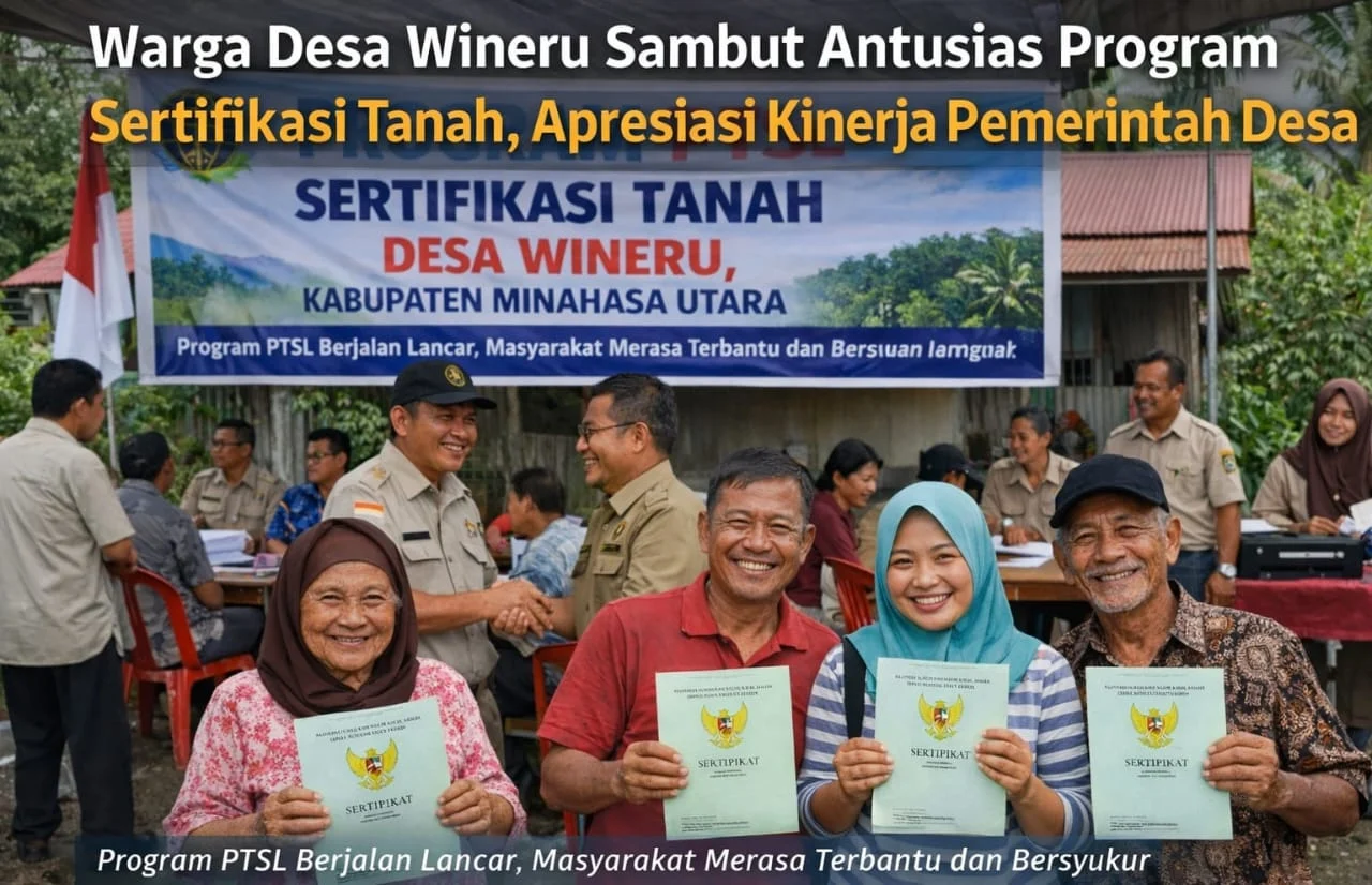 Minahasa Utara-Breakingnewspost.id – Pelaksanaan program sertifikasi tanah melalui skema Pendaftaran Tanah Sistematis Lengkap (PTSL) di Desa Wineru tidak hanya mendapat apresiasi atas manfaatnya bagi masyarakat, tetapi juga menuai penghargaan khusus kepada Pemerintah Desa Wineru yang dinilai proaktif dalam mengawal proses tersebut.Kamis (05/03/2026)