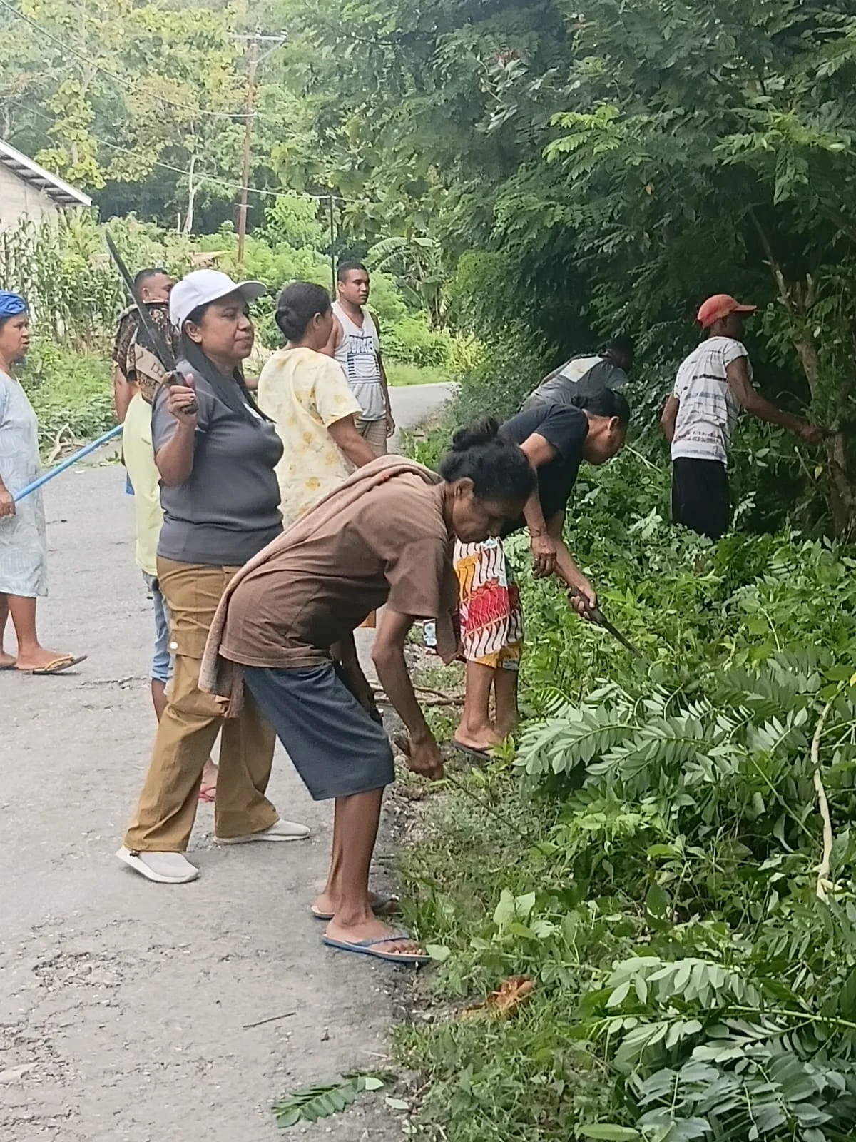 Sejak pagi hari, warga bersama-sama membersihkan lingkungan sekitar, termasuk menyapu jalan, membersihkan sampah, serta merapikan saluran air di sepanjang jalur utama wilayah Kefa Utara.