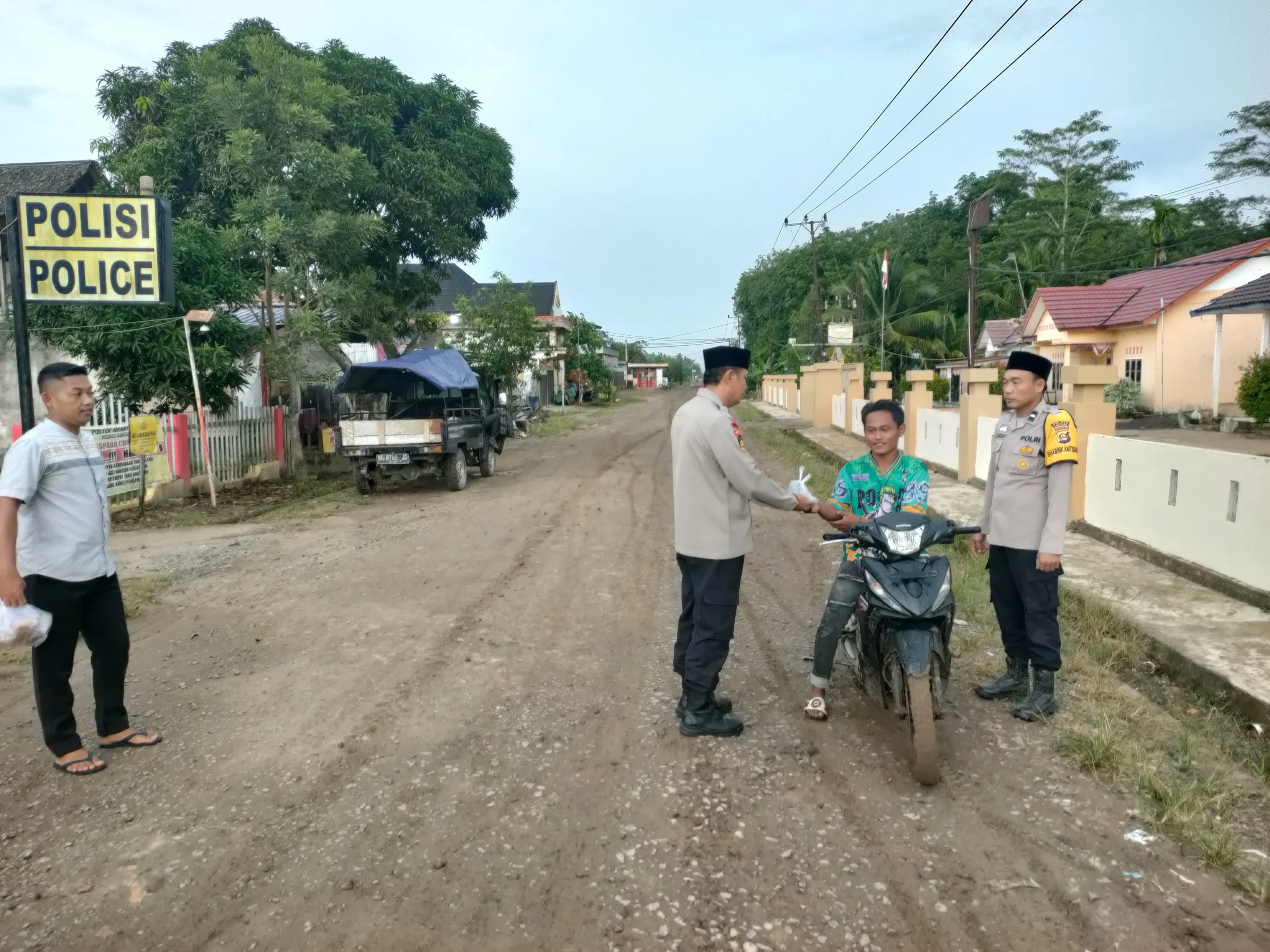 Kapolsubsektor Srikaton, Aipda Devi Irawan, SH, M., Si. memimpin langsung kegiatan pembagian takjil gratis bagi warga di wilayah Kecamatan air salek.